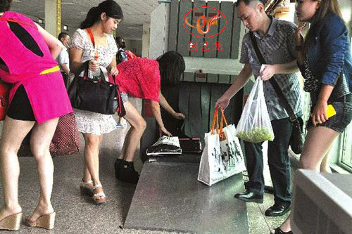 安檢機傳輸慢,心急乘客伸手掀簾拎箱包