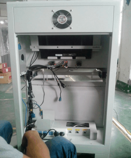4.然后將工控機(jī)裝入操作臺中,并按照線上的標(biāo)簽將其都接到相對應(yīng)的位置,裝完后將工控機(jī)用螺絲固定好,見下圖