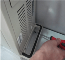 2.將操作臺從木箱中拆出來,用工具箱中的塑料手柄的鑰匙將操作臺后門打開,先將顯示器安裝上,見下圖1,將各連接也接好,見下圖2